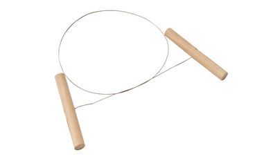Stainless steel wire with two wooden handles. For cutting thrown pots from the wheel head or for the easy slicing of bulk clay.