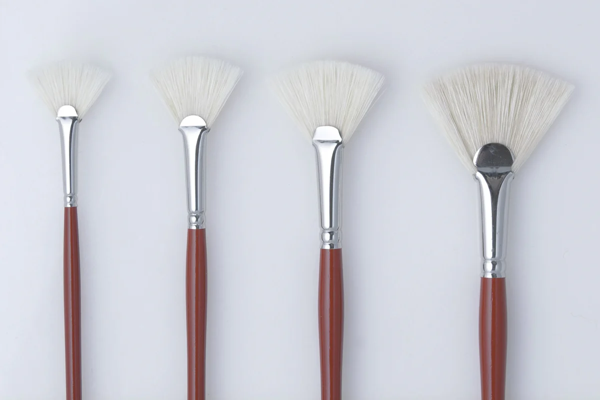 A brush shaped like a fan that is used for highlighting and blending in oil paintings.